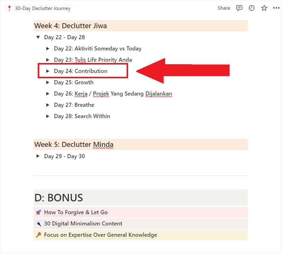 Perkongsian di atas adalah dari 30-Day Declutter Journey.