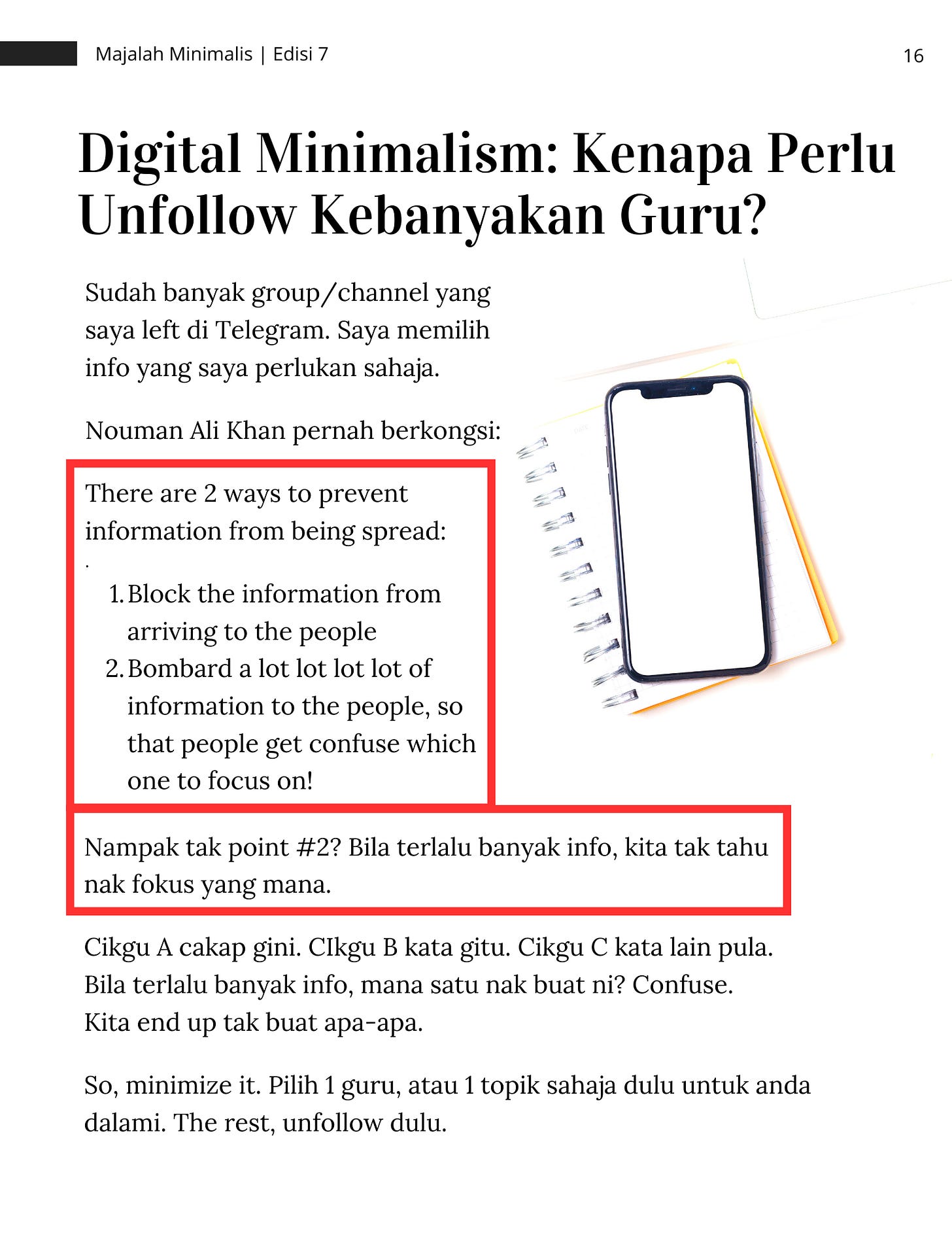 Dalam Majalah Minimalis 7, saya sudah kongsikan tentang ‘unfollow’: