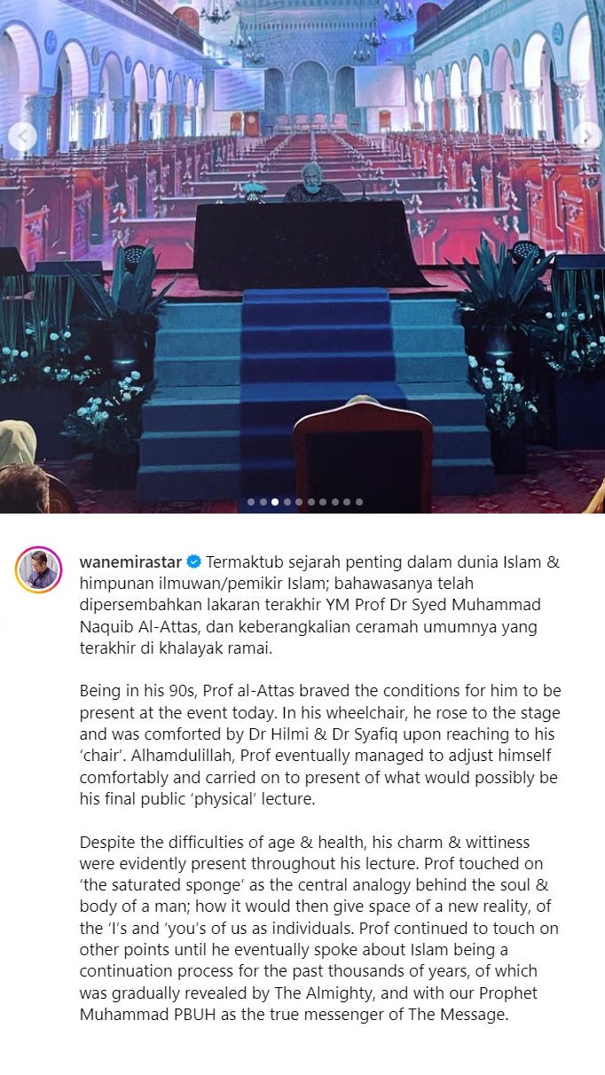 Then I teringat tentang Prof Dr Syed Muhammad Naquib al-Attas, umur 90+ pun masih contribute his knowledge: