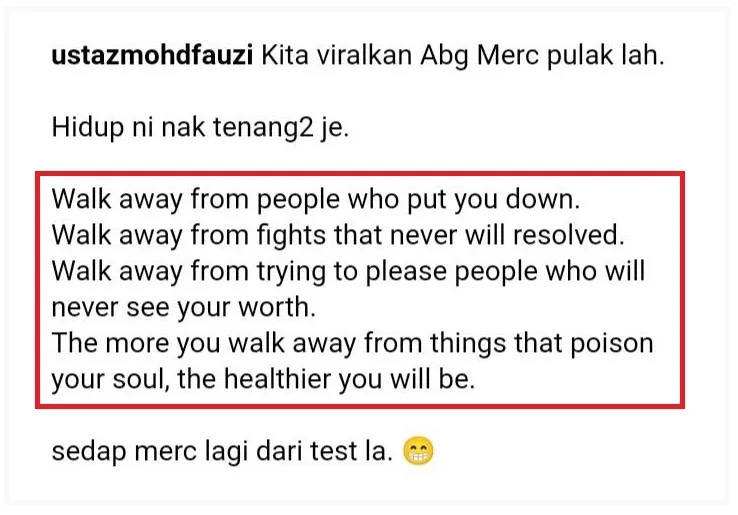 And then I realized about the quote yang I screenshot above, “Ouh patutlah ustaz ni ambil gambar dengan kereta. And patutlah dia end quote dia dengan ‘test la’ ”