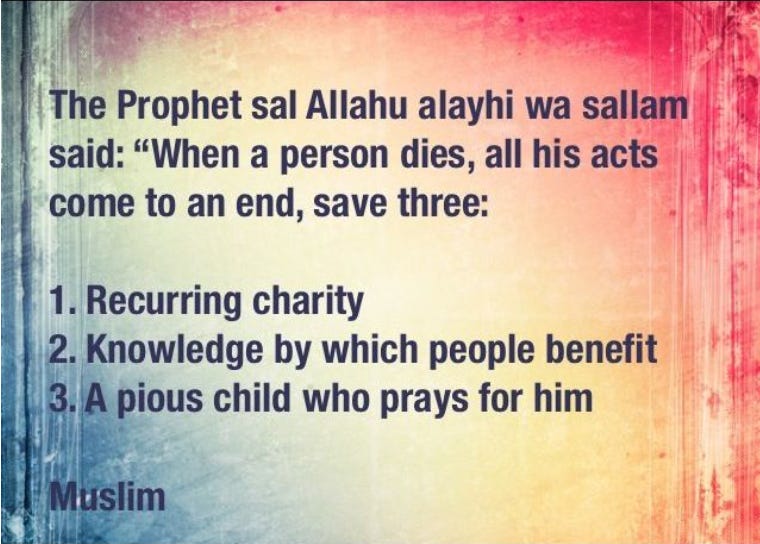 Dia akan sentiasa cari tempat untuk wakaf, sedekah, dan dia akan be the person in charge dalam Whatsapp group alumni sekolah untuk collect duit. At least every month, mesti ada 1 projek. Contoh, projek masjid, sekolah tahfiz, telaga air etc.