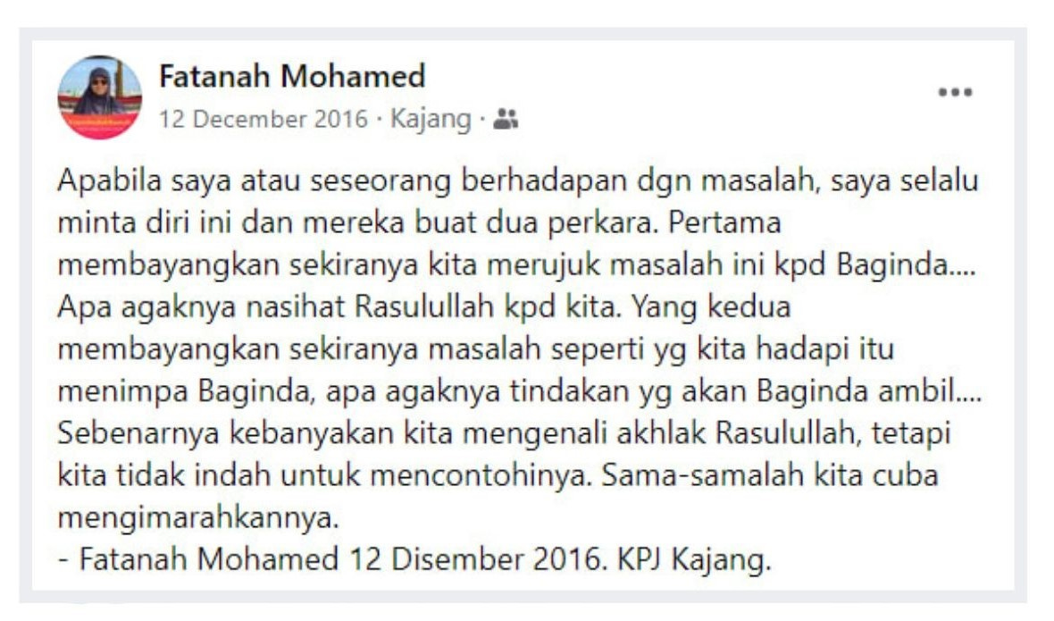 The outcome of our effort, also, is out of control. Kita boleh usaha, tawakkal, and the outcome, still bukan pada kita.
